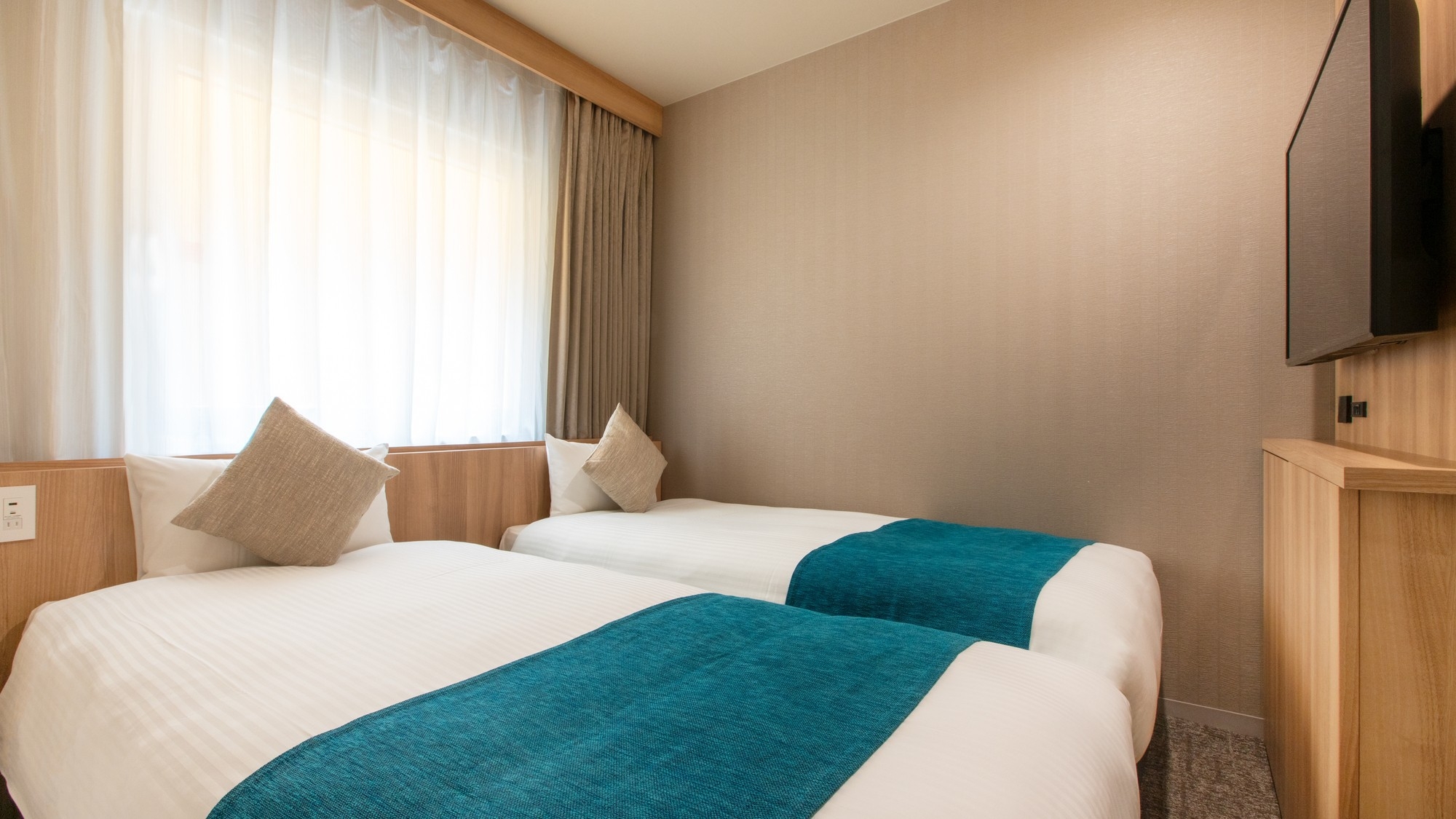 2台のベッドを隙間なく並べたハリウッドスタイルのお部屋です。キングサイズベッドのようにご利用いただけます。