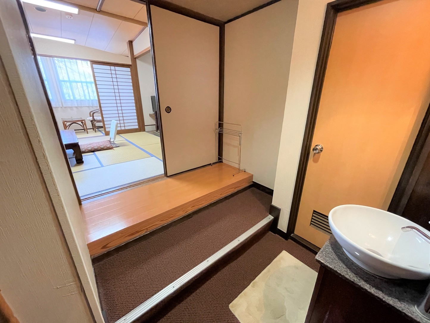 2階客室、部屋まで階段有り(フロント玄関3F)窓無し。木造建て。お部屋が古い為訳アリ価格です。