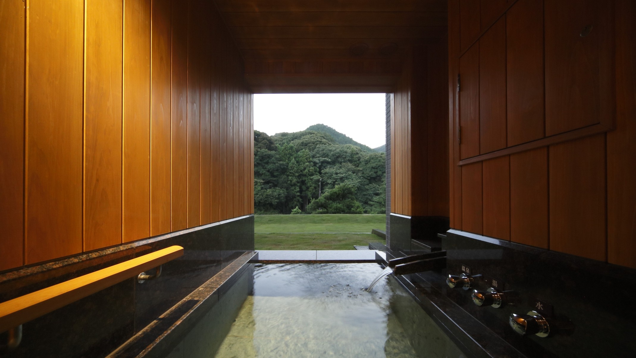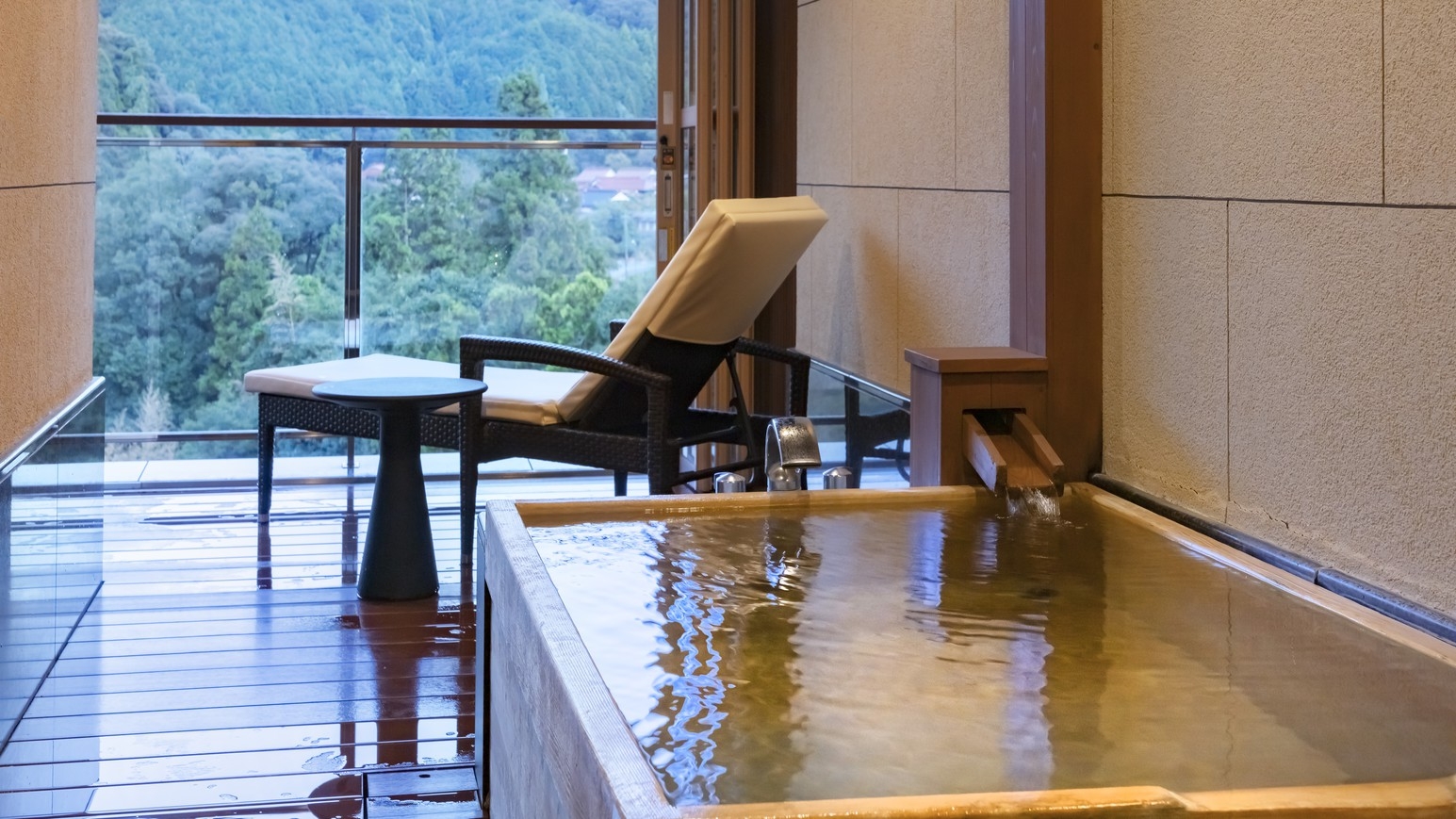 源泉かけ流しの温泉を、心ゆくまでたのしめる客室。