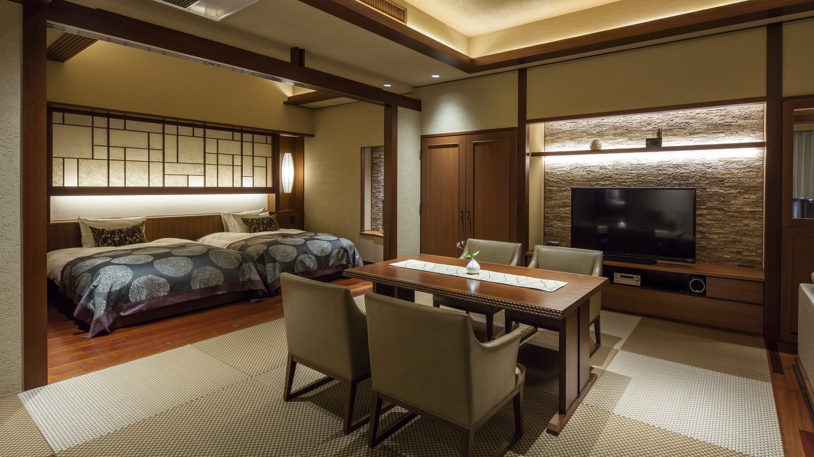 ◇2:渓流側・長門 スイート…15帖和室+ツインベッド+ソファ