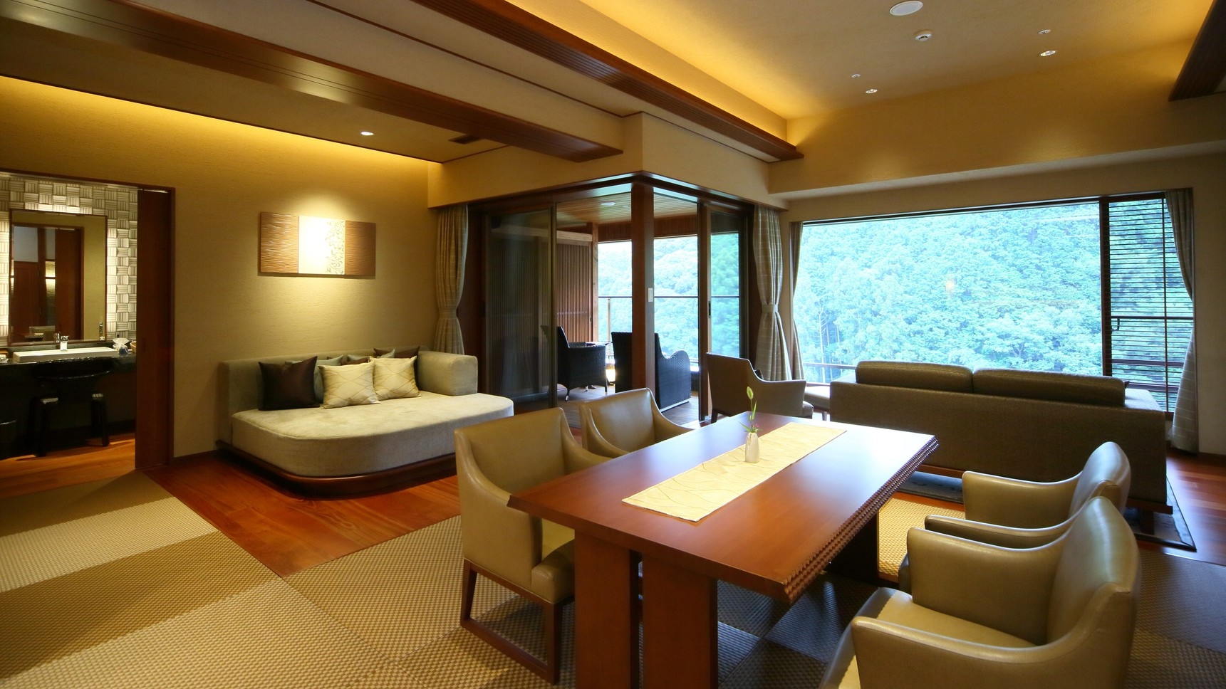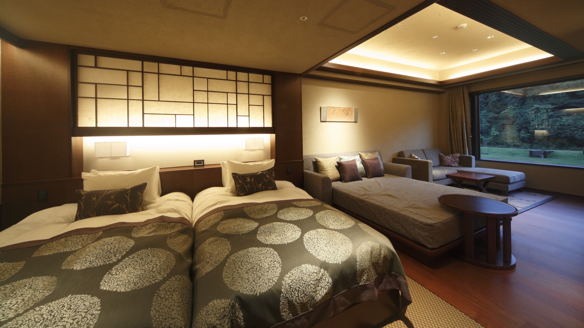 ◇1:庭園側・大谷山荘スイート(約120㎡)…4ベッド、リビング、テラス、サウナ、水風呂