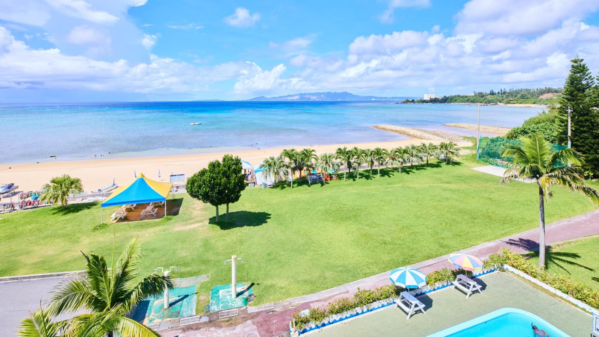 ゆっくりとプールでのんびりした後に、海にかけこむ事ができるのも楽しみのひとつです。