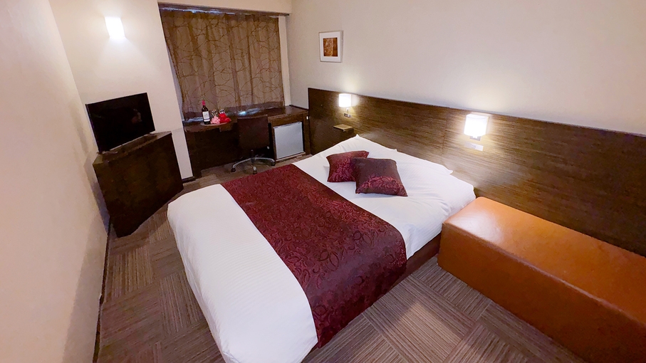 【禁煙ルーム】・ダブルベッド・テレビ(地上波・BS)※全室VOD見放題・光ファイバー接続のLAN回線・冷蔵庫(ミネラルウォーターサービス) ・バス・トイレ