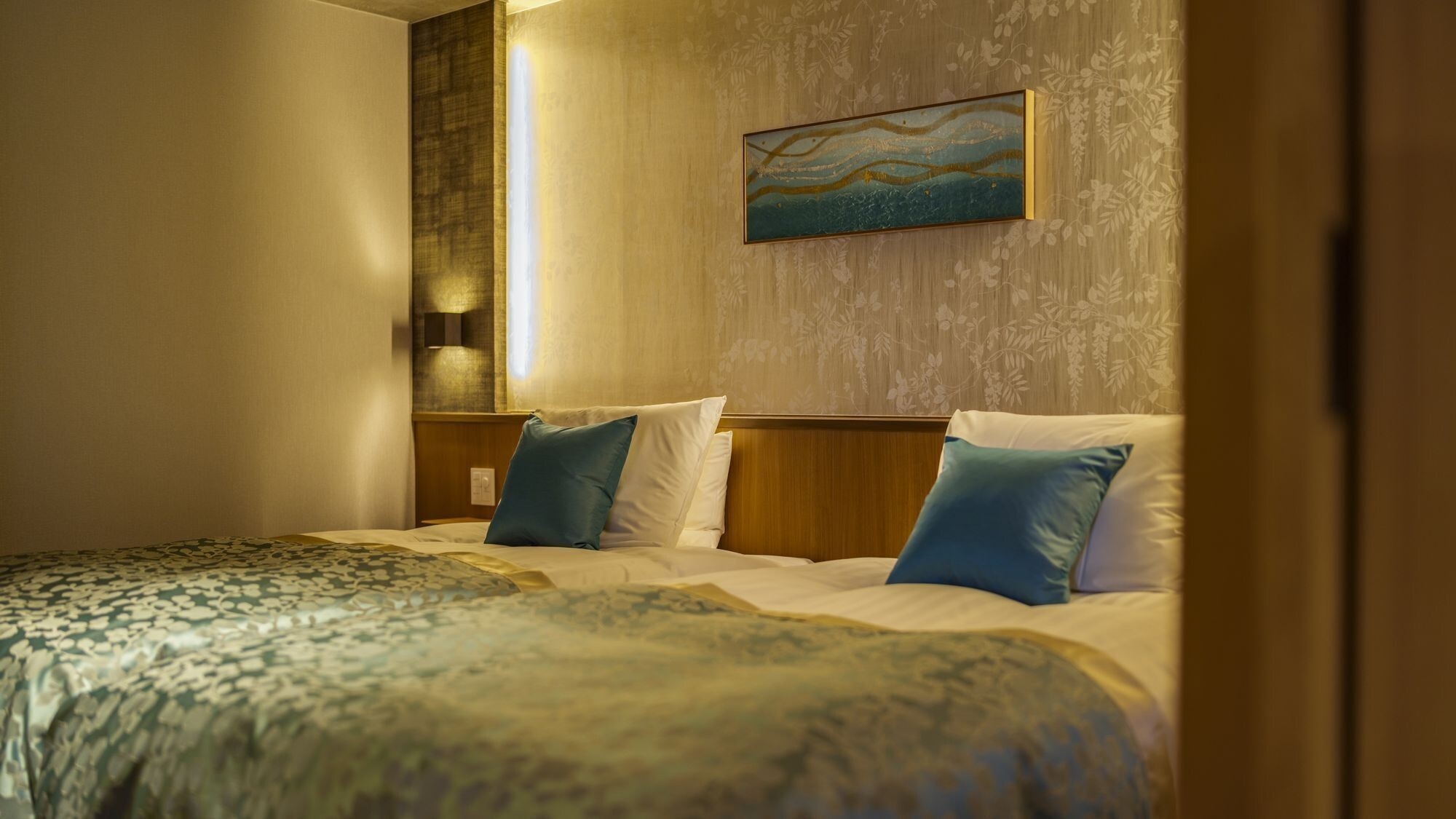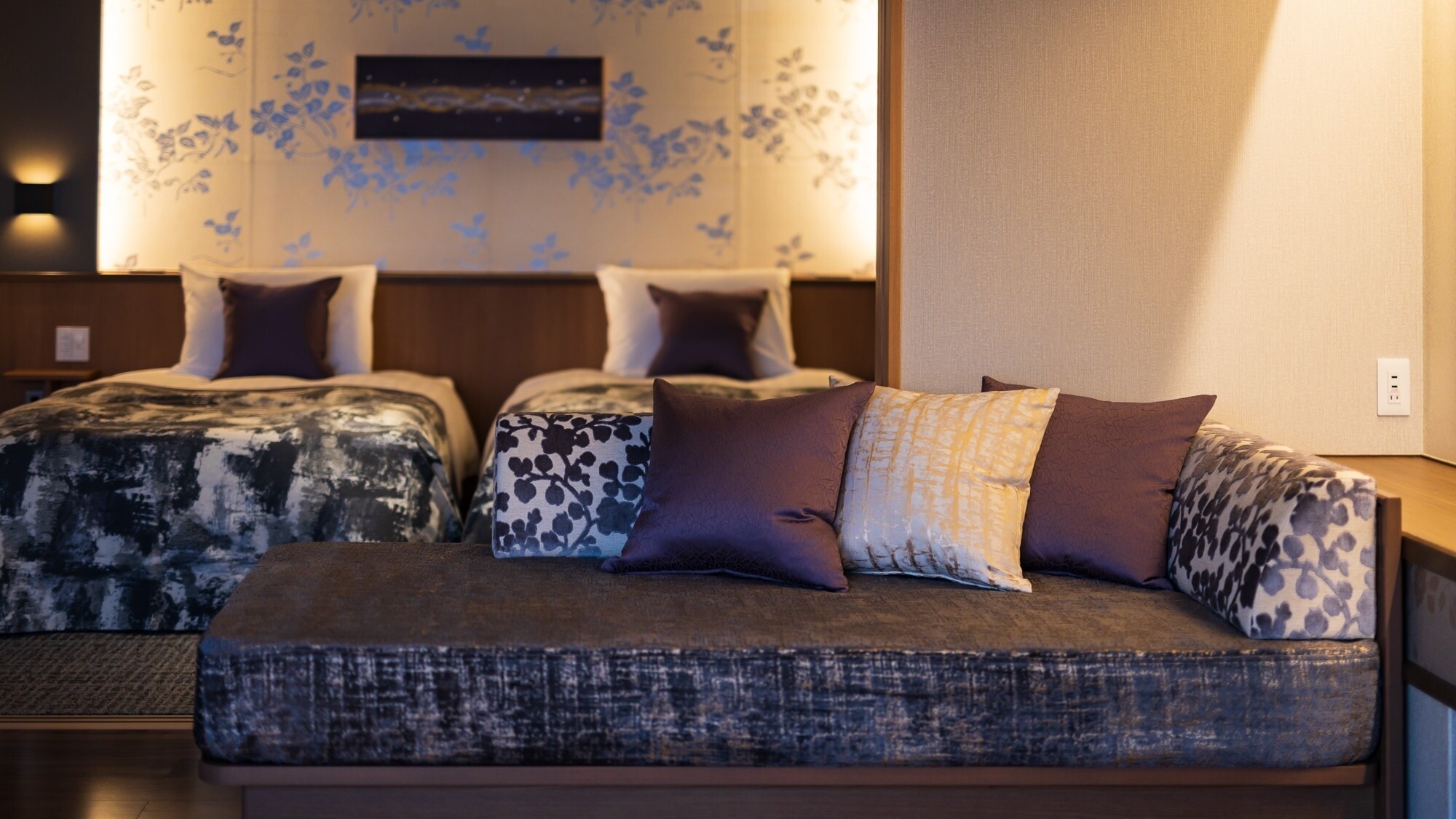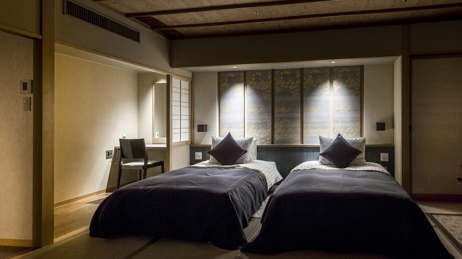 <夕食開始17:30>和室(セミダブルベッド2台)、ワークスペース 自由気ままを極めるあなたへ コンフォート・ツインはふたり旅にちょうどいい45平米