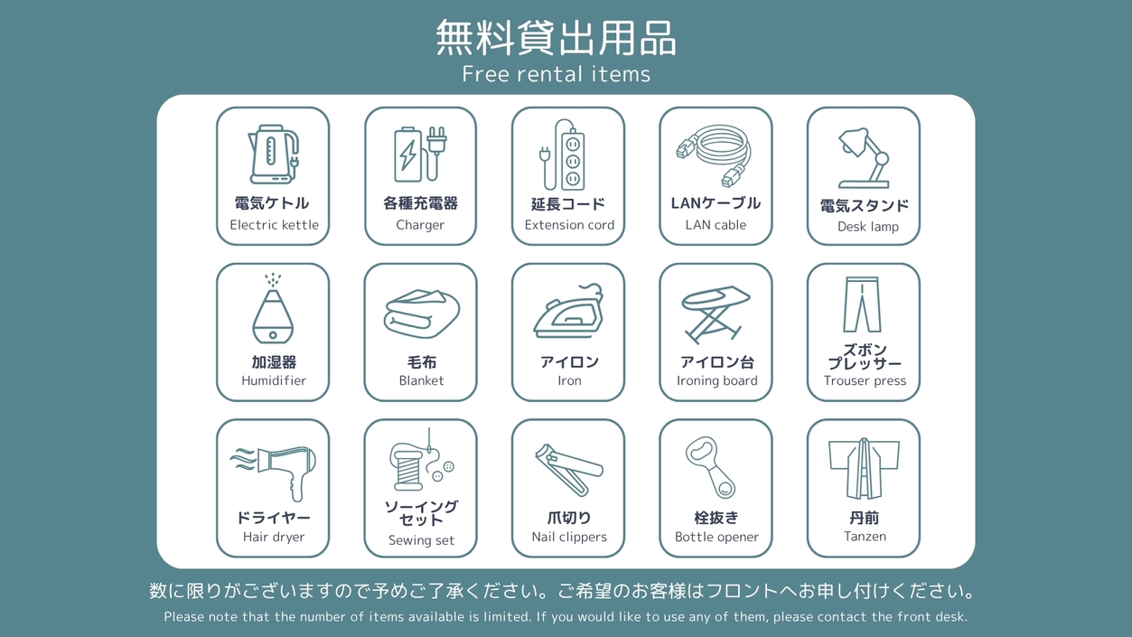 ・滞在中無料のドリンクコーナーをご利用いただけます(利用時間15:00〜22:00)