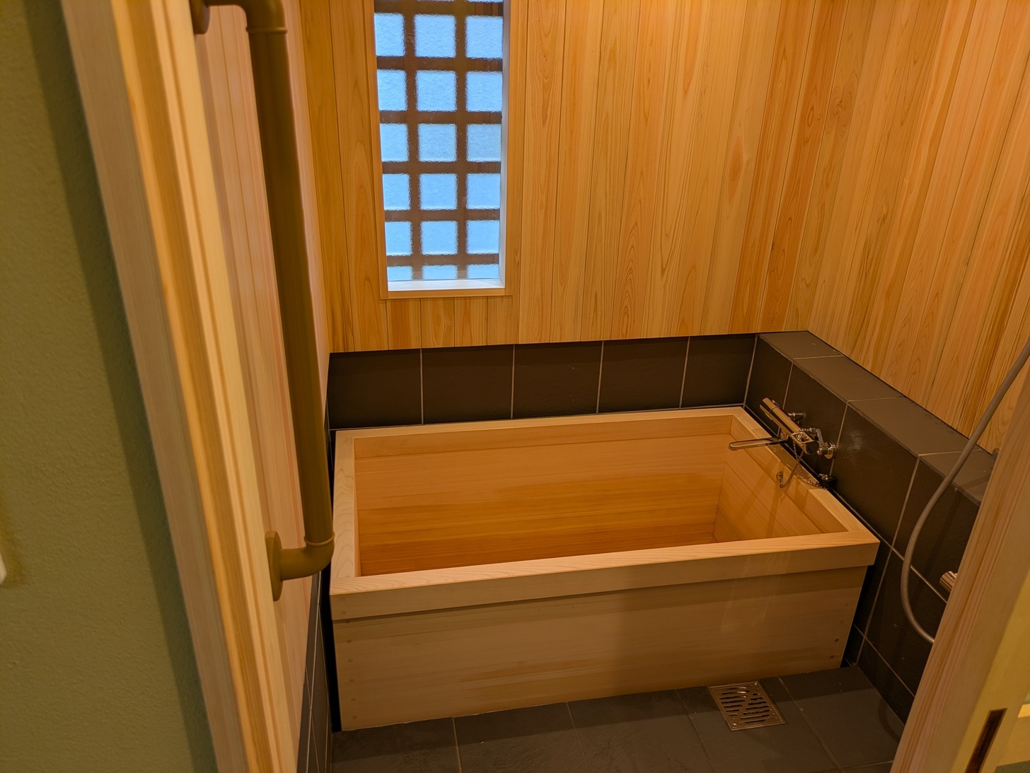 総ヒノキ造りの浴槽と薬草の香りの組み合わせは最高と評判!