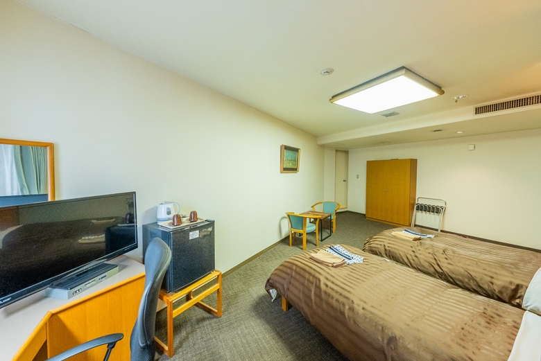〔27.7平米〕ワイドバス・トイレ・冷蔵庫・ウエルカムドリンク付。レジャーに最適なツインルーム。ネット接続無料。