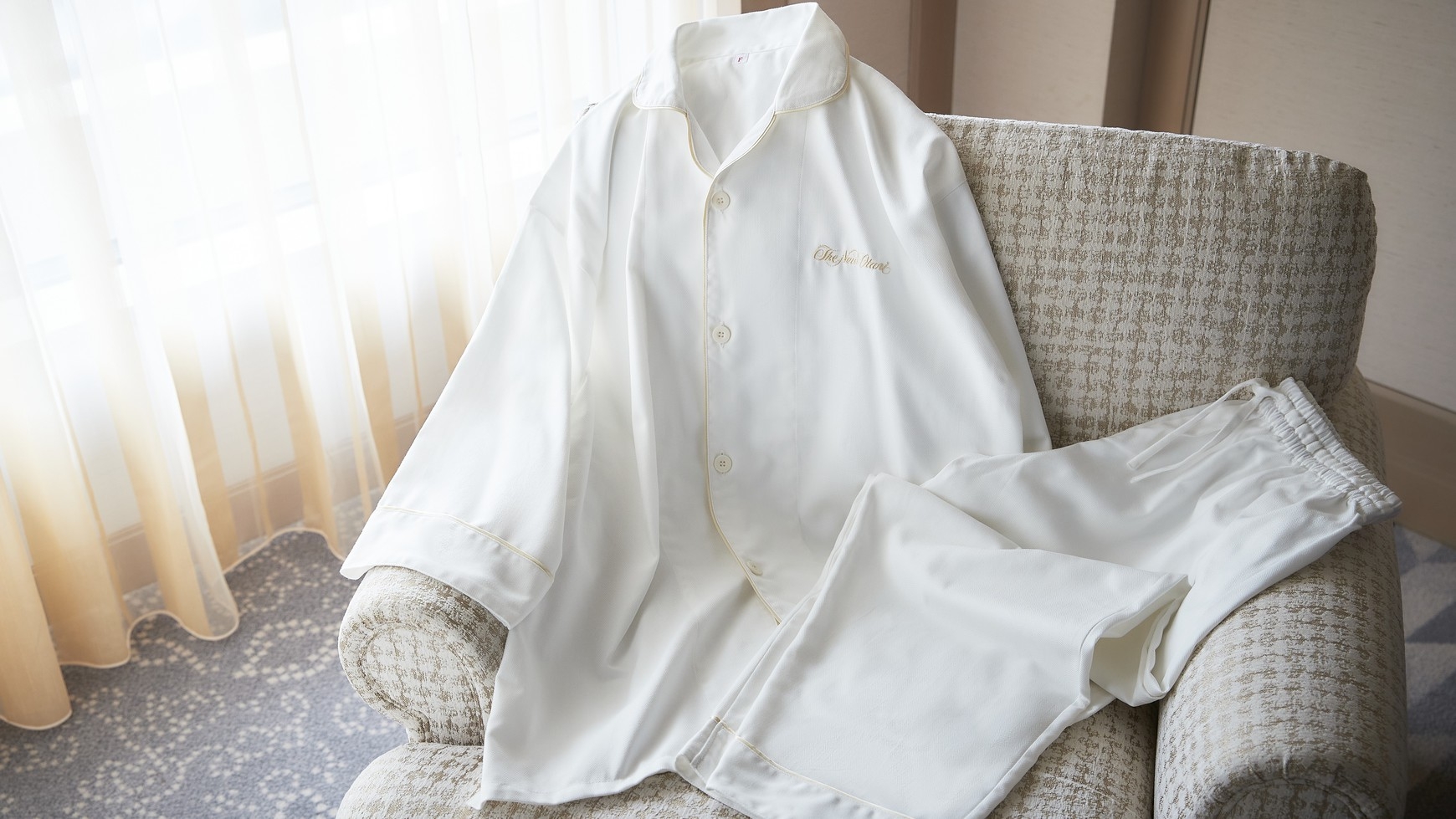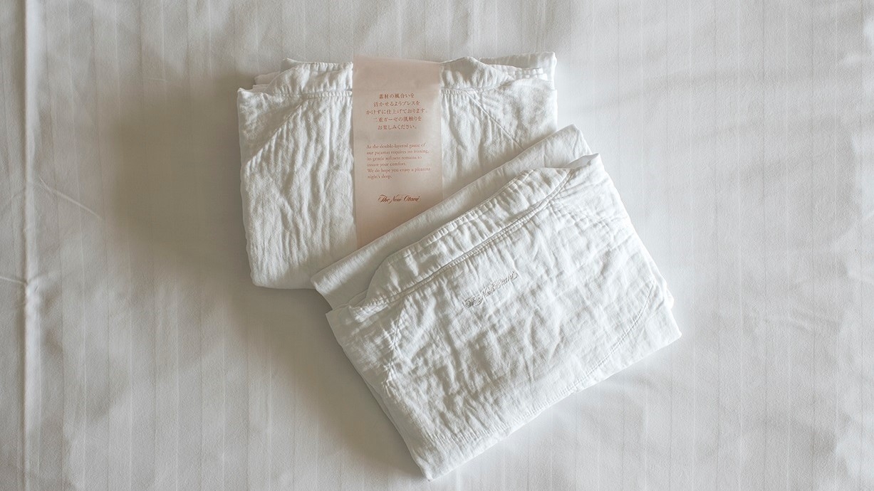 保温性・吸湿性・発散性に富み、肌触りのよい安全性の高いガーゼを透けないように交織二重ヘリンボン柄に織り上げたオリジナル・リラックスウェアをご用意。