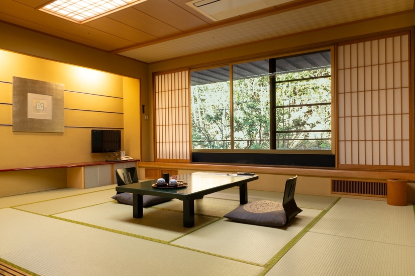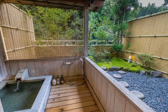 バス・温水洗浄トイレ付き。客室に露天風呂のついた山側の閑静なお部屋です。