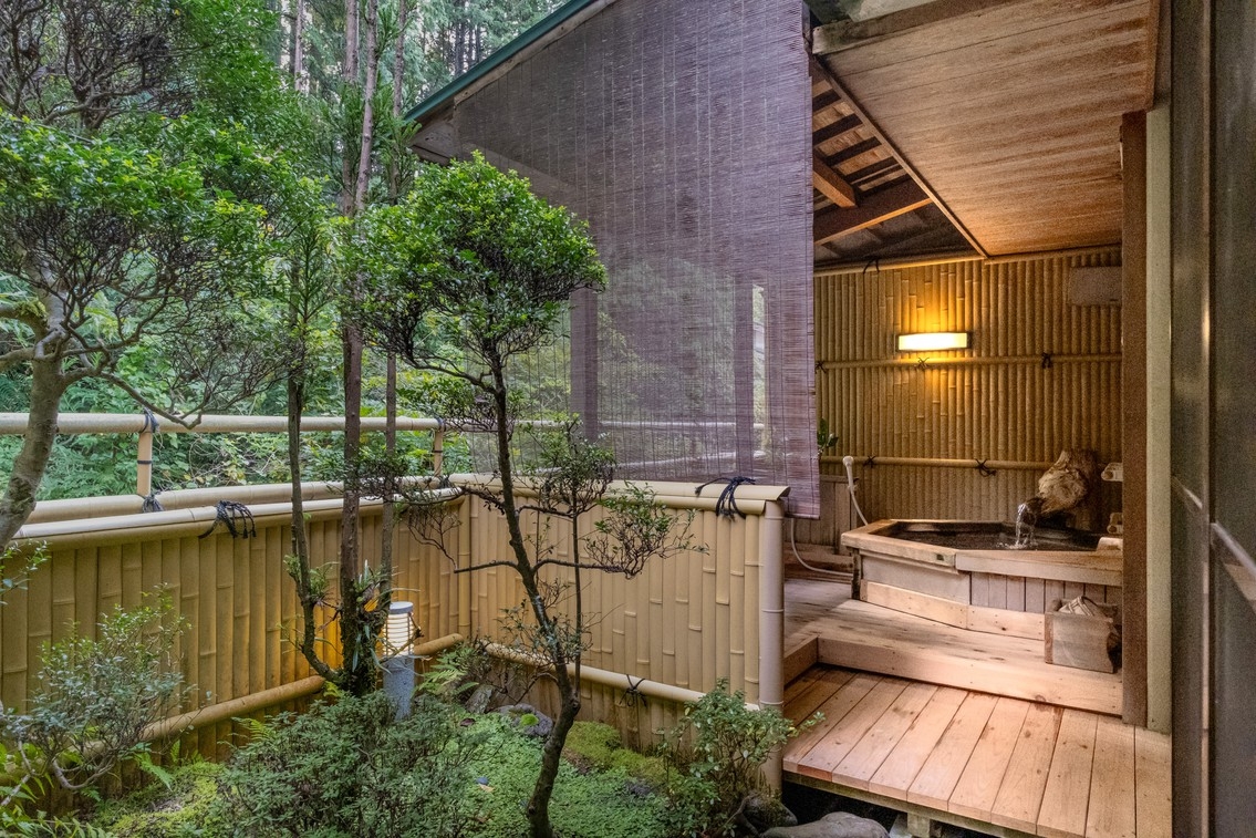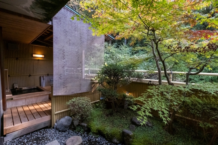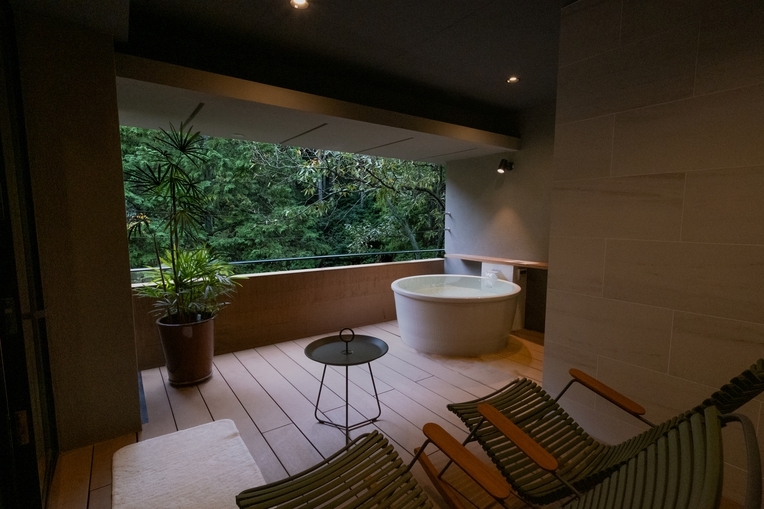 客室に温泉露天風呂のついた山側の和洋室タイプです。