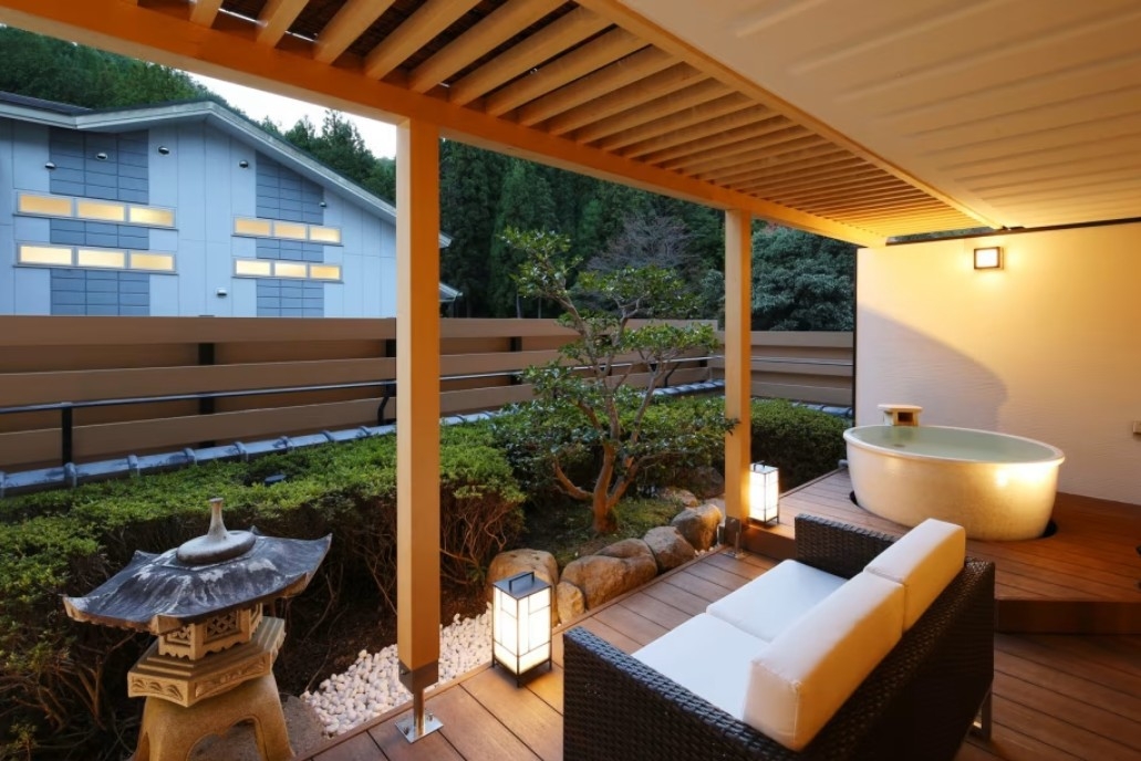 客室に露天風呂のついた山側の和洋室タイプのお部屋です。