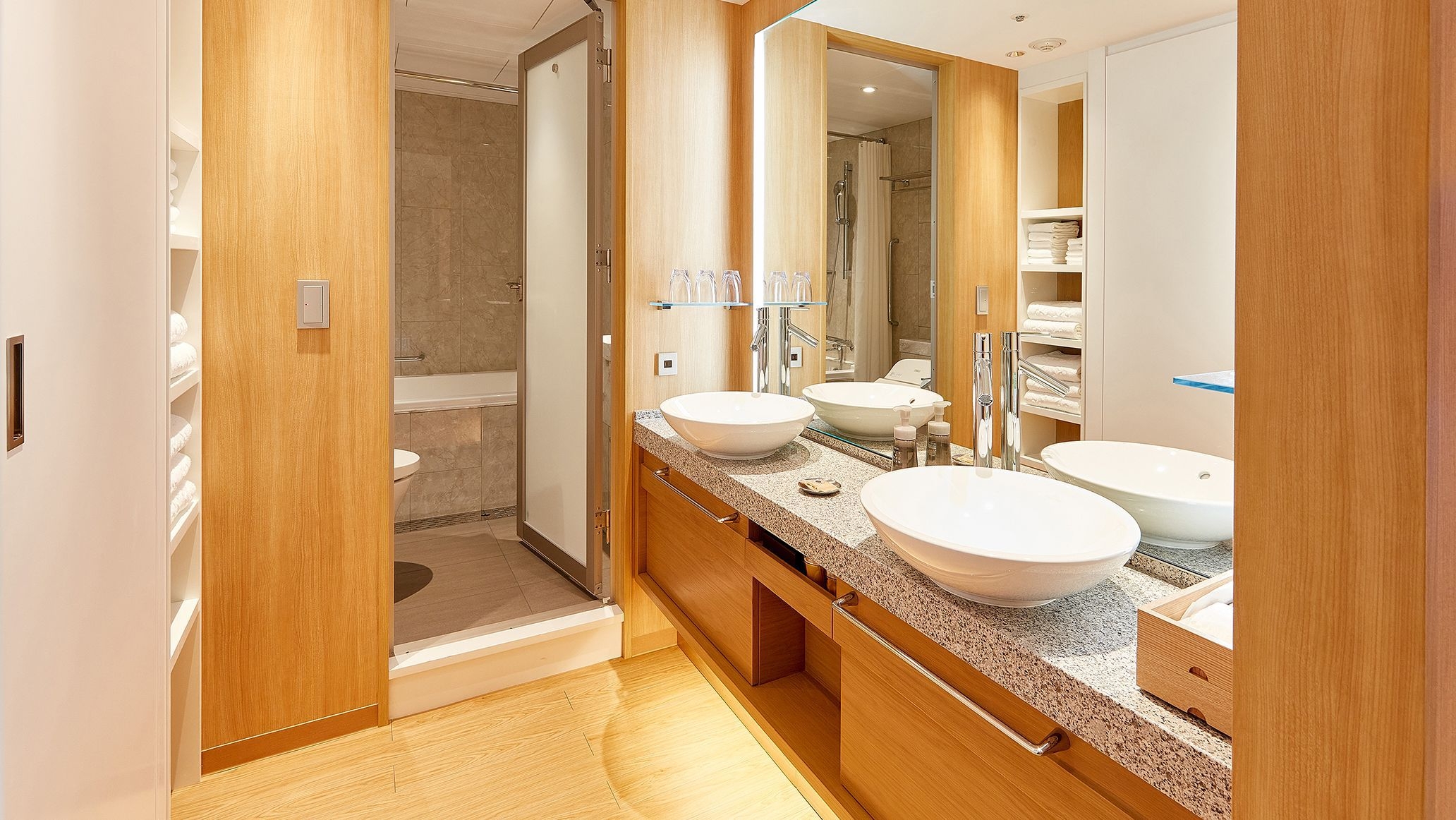 明るい陽が差し込み、心豊かなくつろぎを実現するナチュラルで上質な室内。洗い場付きバスルームを備えております。