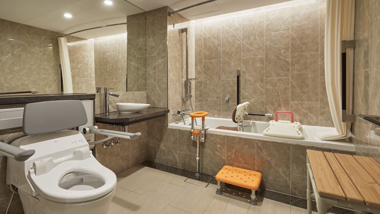 ユニバーサルデザイン仕様のお部屋でございます。お客様の状態にあわせた備品の取り付けをご希望の場合はホテルまでお問い合わせください。