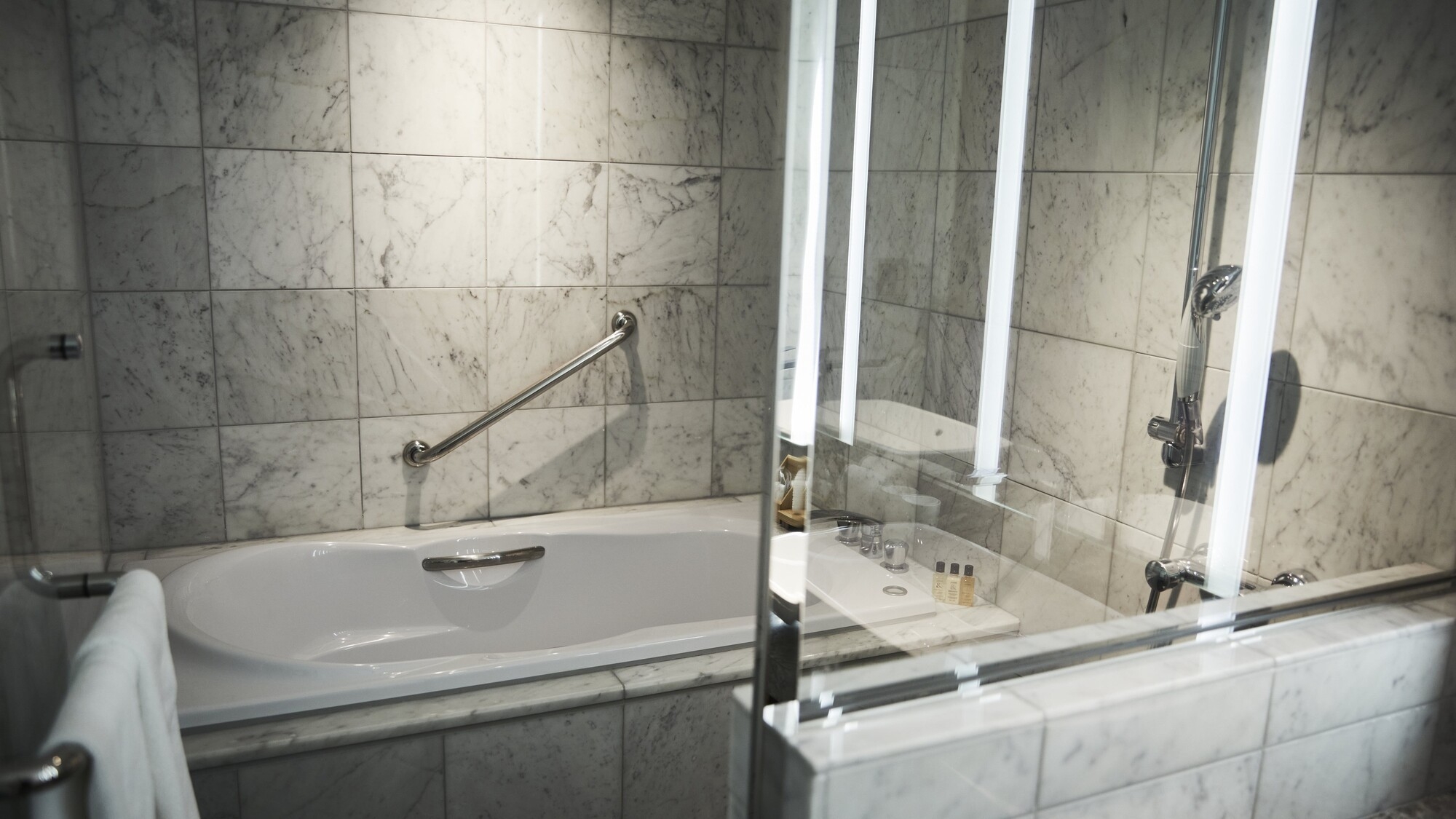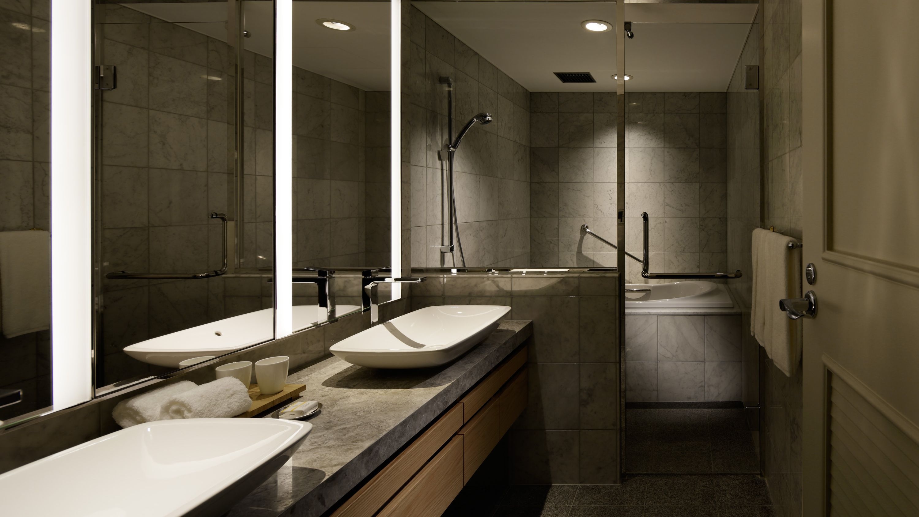 クラブフロア プレミアグラン。こだわり抜いた調度品と南仏ロクシタンの香り立つアメニティ、都会の絶景が楽しめる開放的なバスルームが特徴。