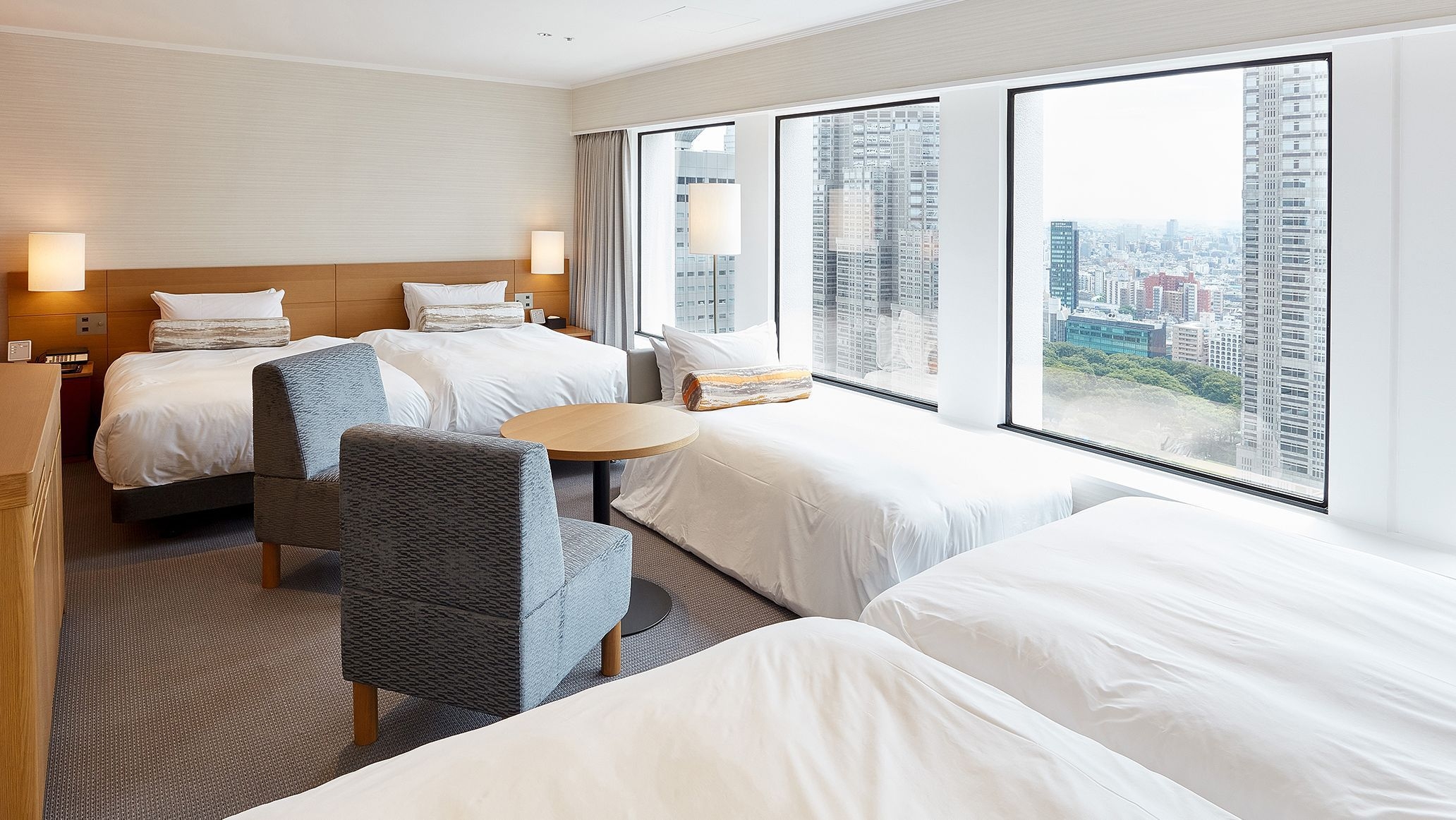 2015年秋、スタイリッシュかつ心温まる”和み”の空間を演出するリニューアルルーム。40平米を超える角部屋で3名様でも広々とご利用頂けます。