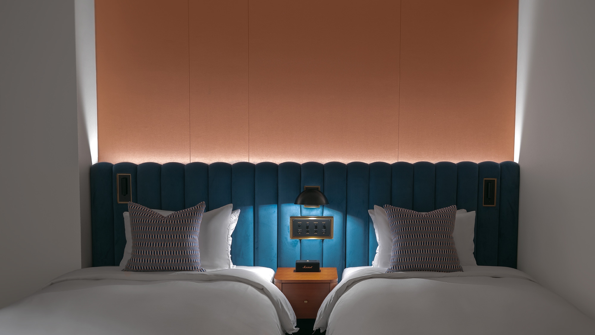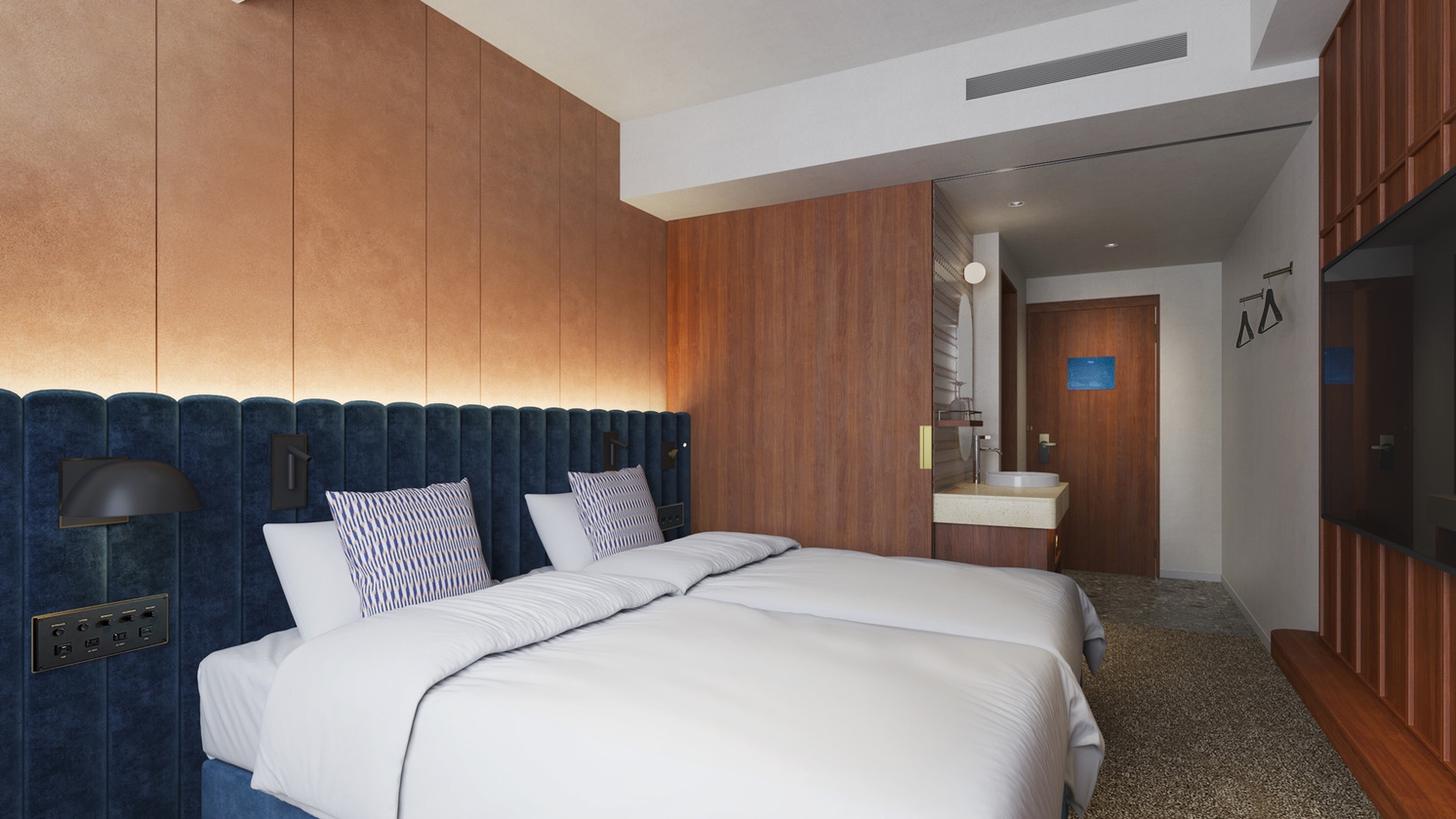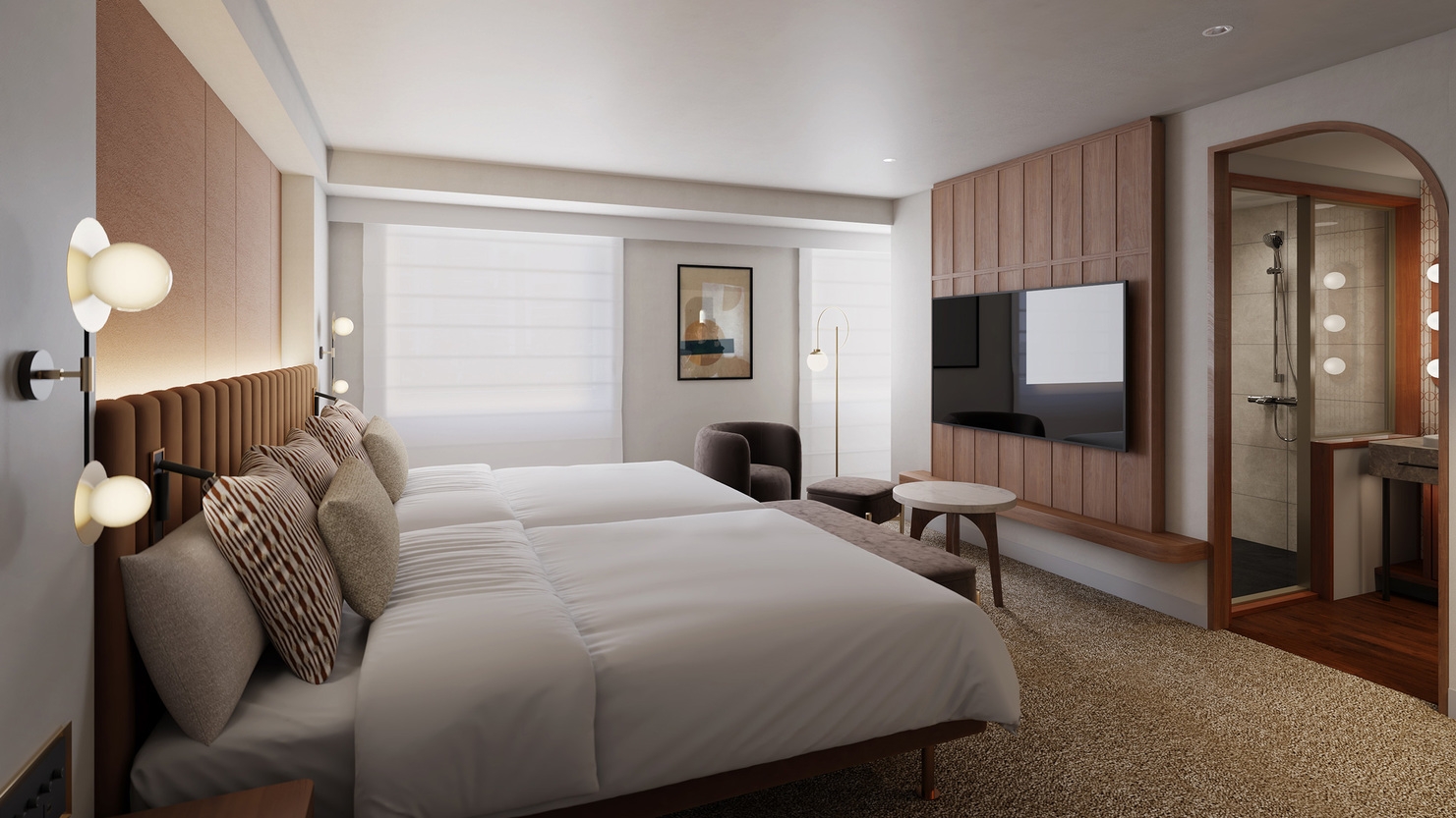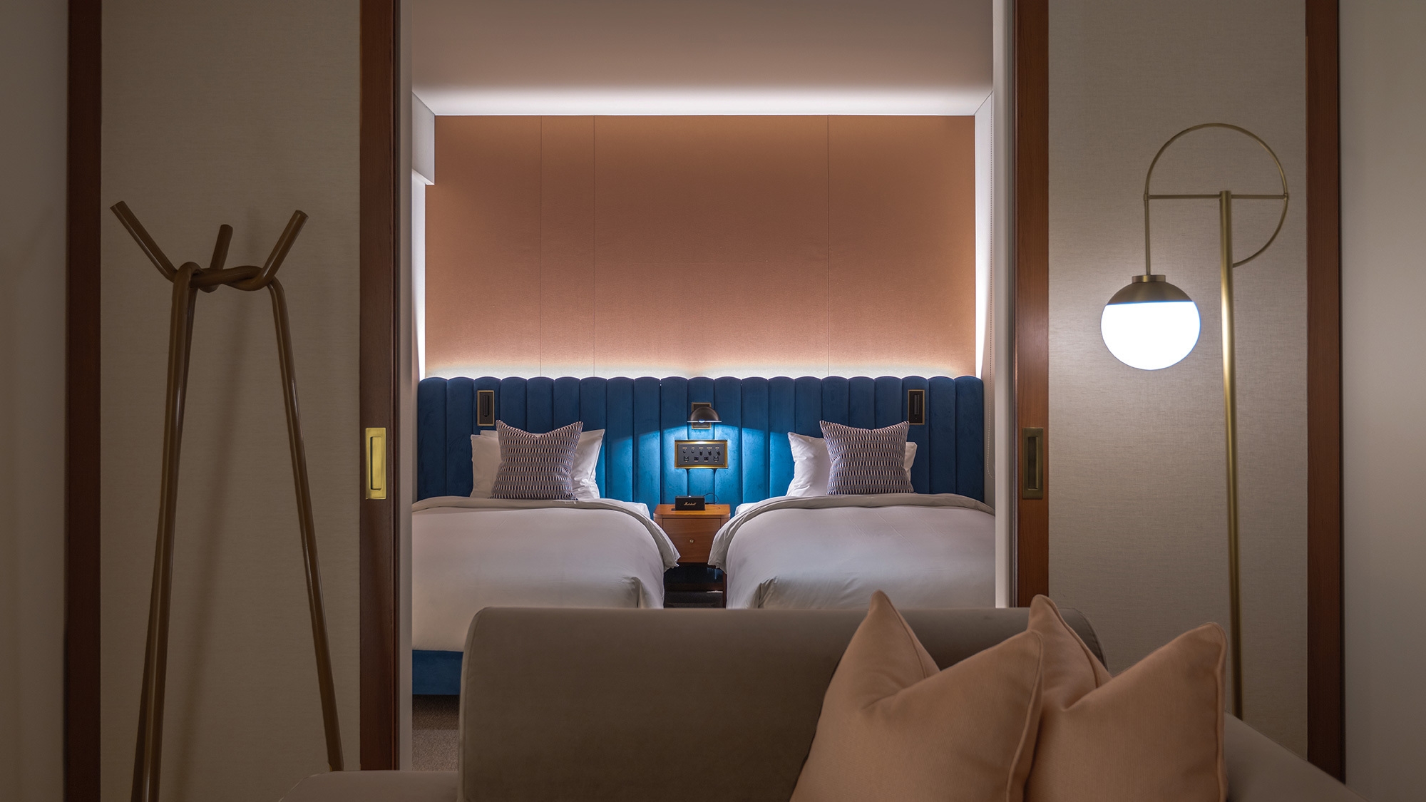 【洗練された大人のための空間】寛ぎの空間を優先し、デスクを排除したツインルームです/19平米/ベッド幅97cm(ハリウッドツイン可)/55インチスマートTV