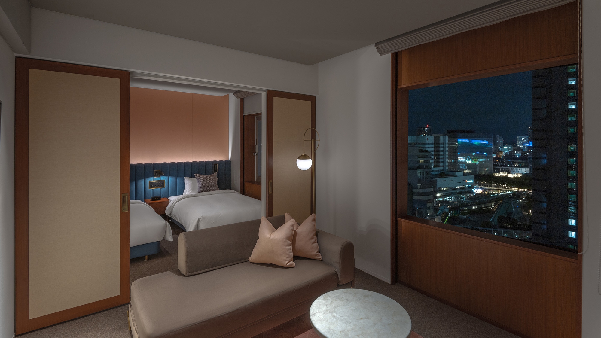 お部屋からは昼夜で印象が変わる壮大なシティビュー、館内は洗練されたモダンな雰囲気でプチリゾート気分をお愉しみいただけます。