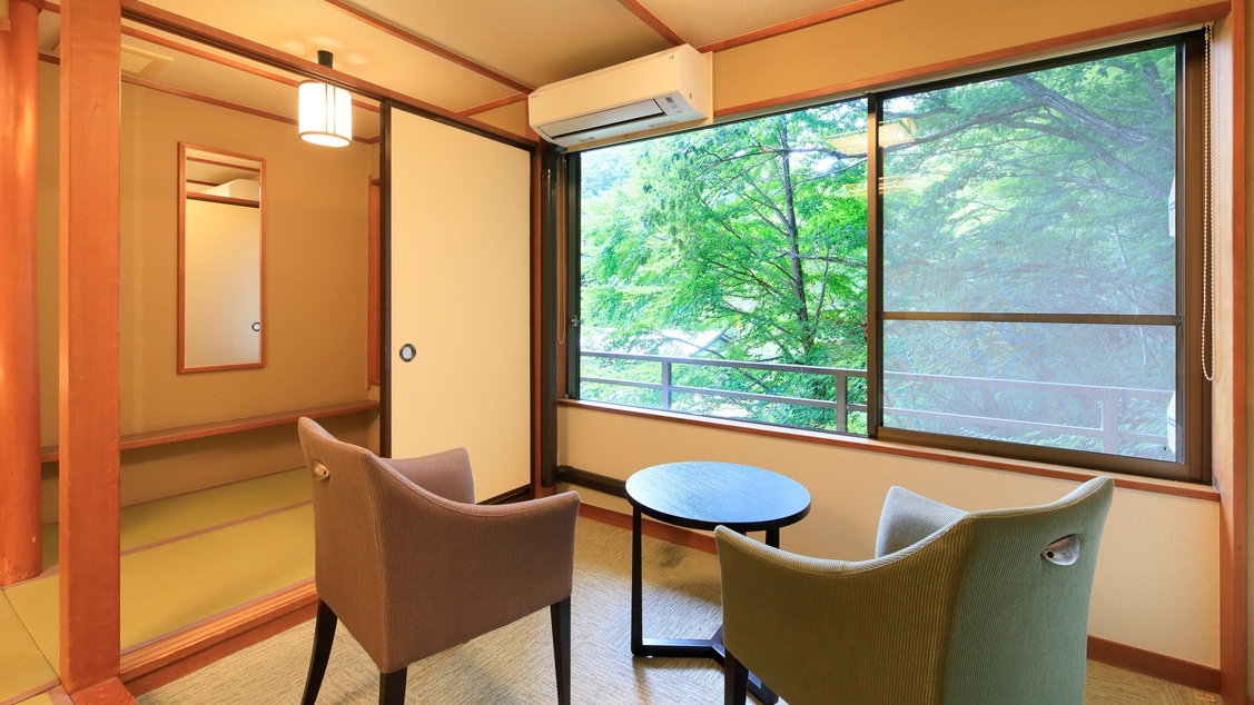 四季の移ろいと自然のやさしさを感じられる、和の趣を大切にしたお部屋です。最大3名様まで同室可能。(テレビ:BS視聴不可)