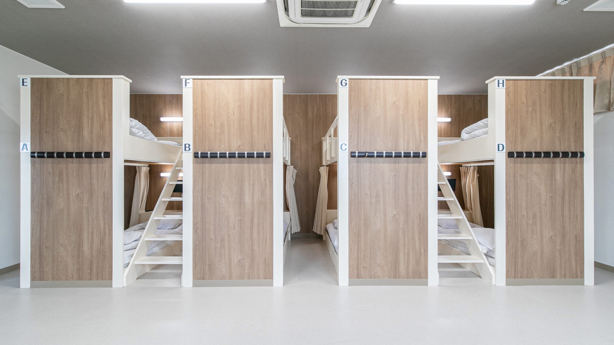 2段ベッドが3台並んだお部屋。1名様でも貸切です♪※バス・トイレは共同※客室備品は「テレビ/Wi-Fi/冷蔵庫/スリッパ」タオル等のアメニティはフロントでご用意