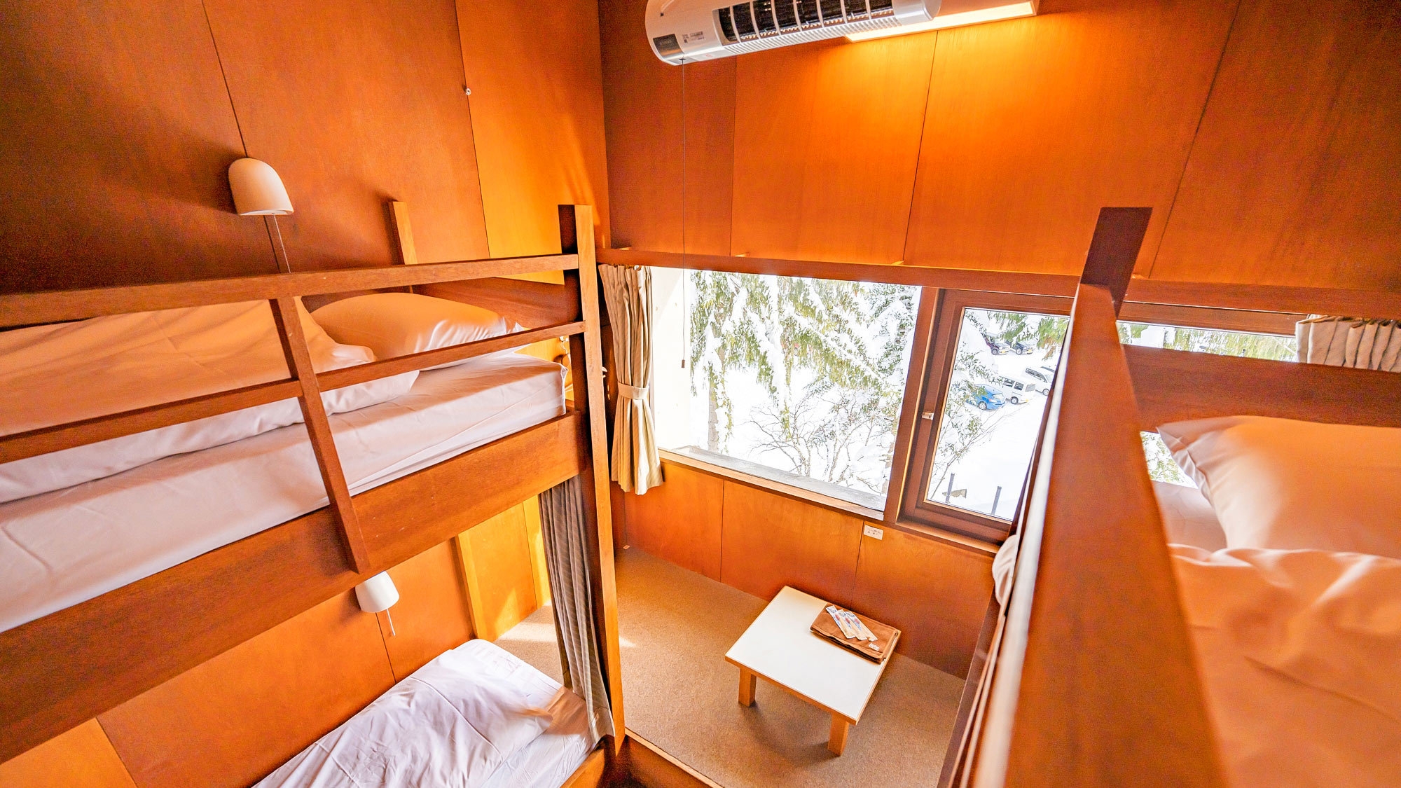 2段ベッドとロフトを1台設置(+エキストラ布団)、最大4名のNEWスキーヤーズルーム洗面台・トイレ・ジャグジーお風呂は共用