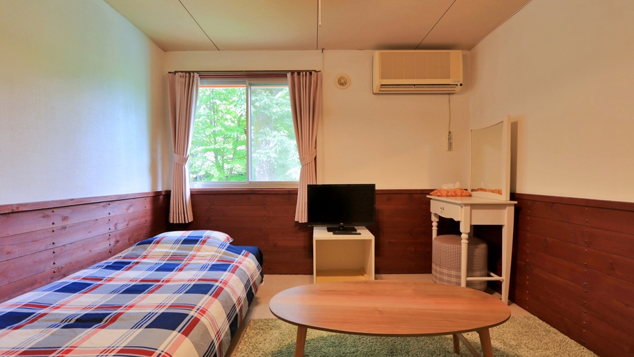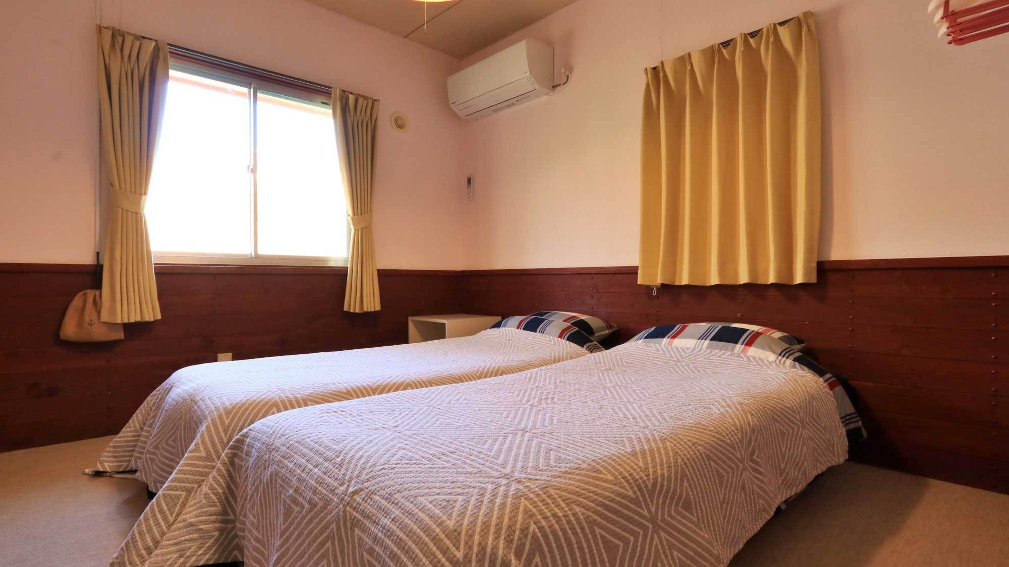 <2階−洋室>シングルベッドx3 ■設備:Wi-Fi・エアコン・共用(ドライヤー、ジャグジー、トイレ、洗面)※ジャグジーは客室備え付けではございません